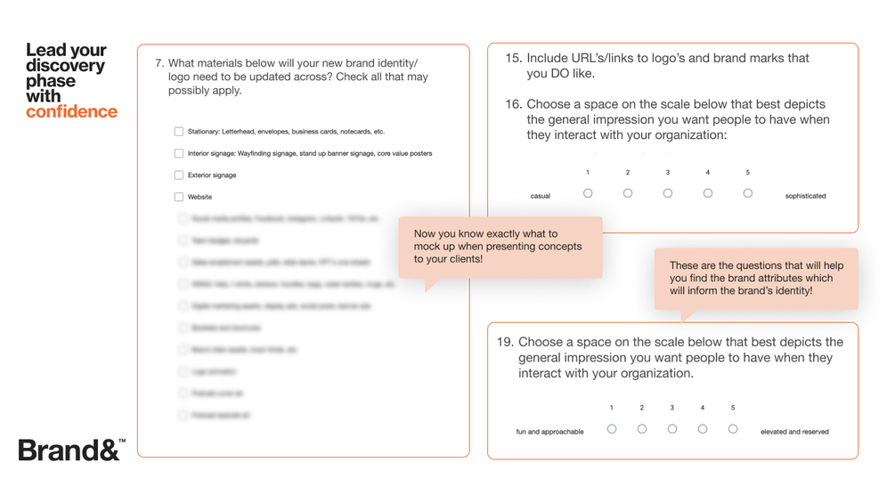 Building brands can be exhausting. The work it takes before you even get to the discovery phase can be a lot. How do you know what questions to ask to gather all the preliminary information needed to build a great brand? I've spent the last 15 years figuring that out, building, working on, and helping some of the most epic brands on the planet. This pack of questionnaire and survey templates will be everything you need to get the right client information, and get started building and epic brand!